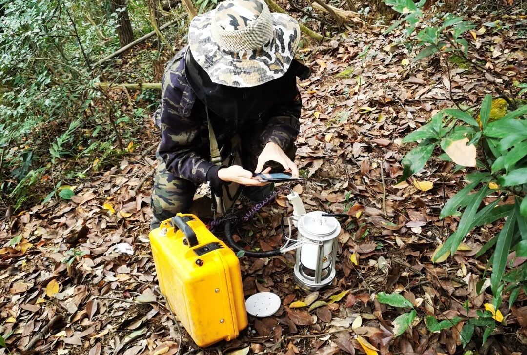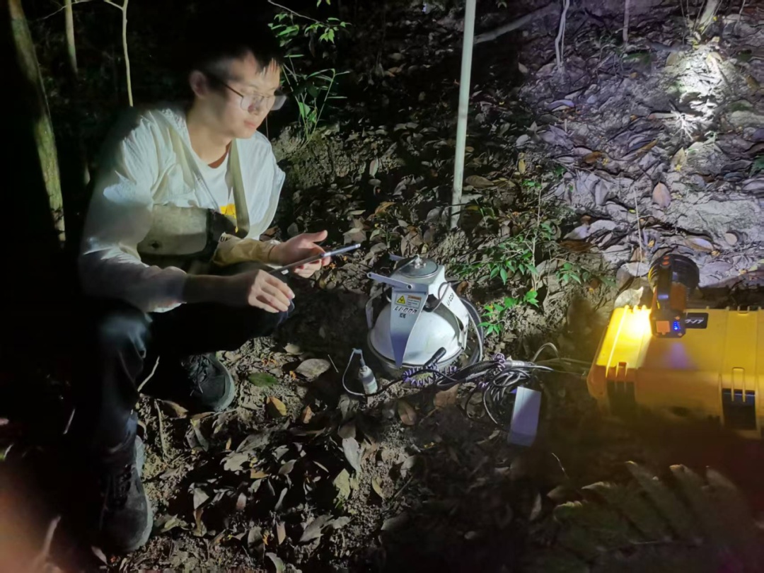 半夜,顾志壮在天童干旱实验样地测定土壤呼吸
