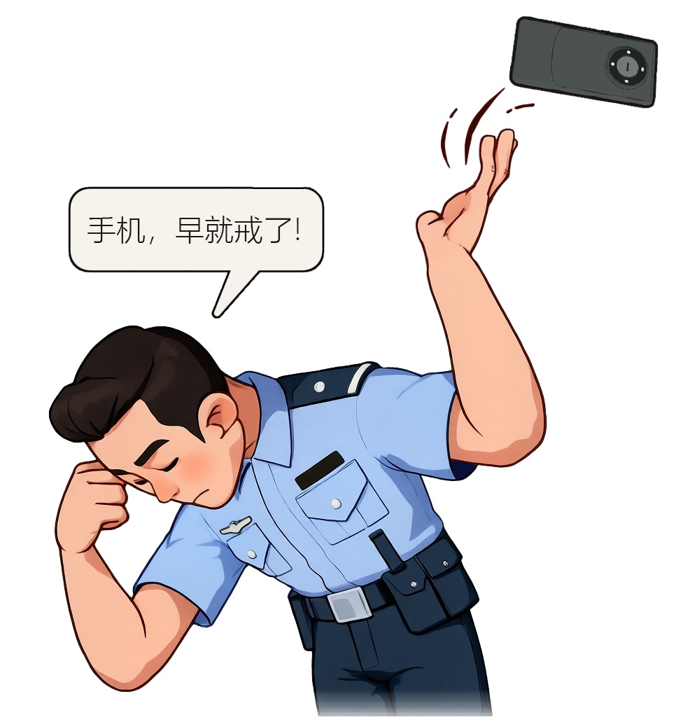 在监区工作时,除使用“警务通”通话外,民警不能使用自己手机。看似幽默的自嘲,实则是监狱民警深入骨髓的自律。放下方寸屏幕,是为了更专注地守护大墙里的秩序和安宁。