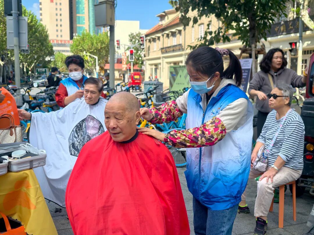 记者在现场看到,集市划分为“共享、乐享、智享、安享”四大特色区域,每个摊位都人气爆棚。共享集市里,理发摊位前大排长龙,理发师们手法娴熟地为老人们修剪头发,82岁的山阴路居民严师傅理完发精神焕发,笑着说道:“这里可以免费剃头,还能跟老邻居们一起挤挤热闹,很开心!”修伞、钟表维修摊位前也围满了居民,家住附近的应老伯拿着刚修好的雨伞喜笑颜开:“家里这把伞骨子断了一直没舍得扔,没想到家门口就能修好,太方便了,这样的集市太实用了!”