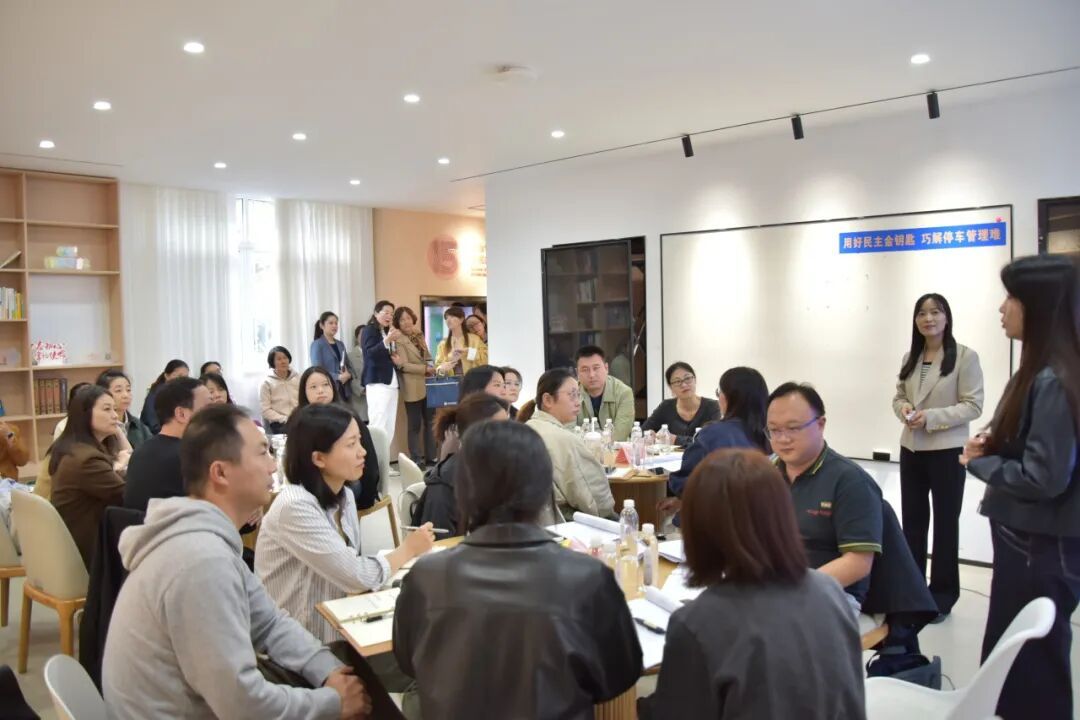 现场观摩《业委会如何凝聚业主》实训课程,演绎环节业委会成员真实再现了如何通过耐心沟通、协调多方意见,有效凝聚业主共识、化解小区停车位绿改施工矛盾的整个过程。 大家细致聆听、互动频繁,思维交融、气氛热烈。