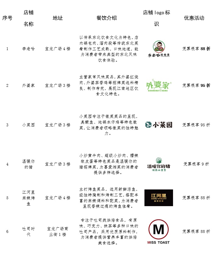 观赛之余,别忘了带上你的票根,到奉贤宝龙广场及周边合作商户,享受专属美食折扣!