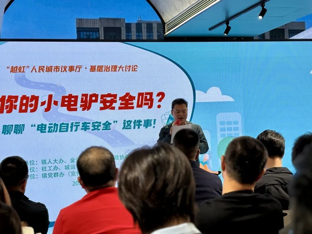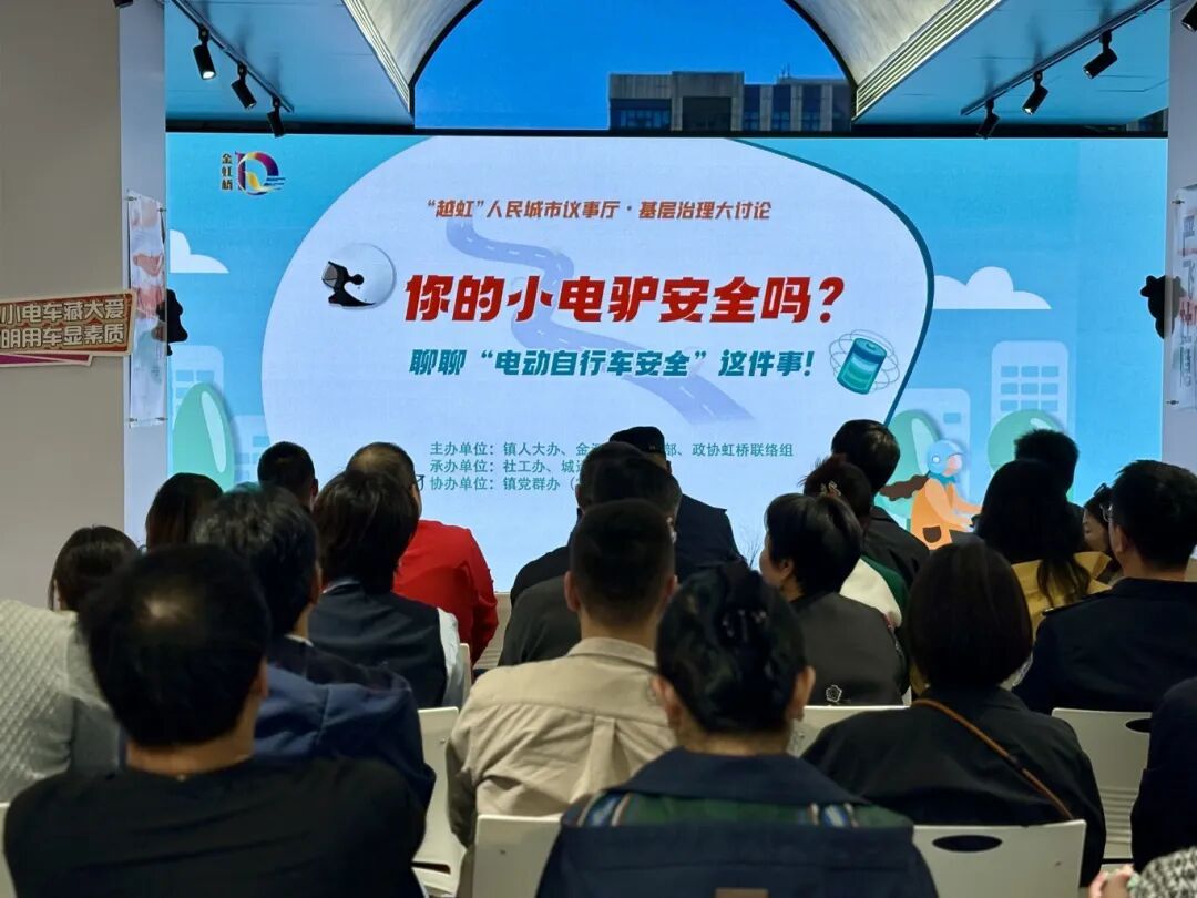 10月28日下午,“越虹·人民城市议事厅·基层治理大讨论”暨虹桥镇人大代表联络站“微问政”活动,在金汇街区人大代表联络站举行。政府相关职能部门、区镇人大代表、居民群众代表,及消防、快递、物业等行业专家代表会聚一堂,围绕“你的小电驴安全吗?”这一民生话题展开深度探讨。