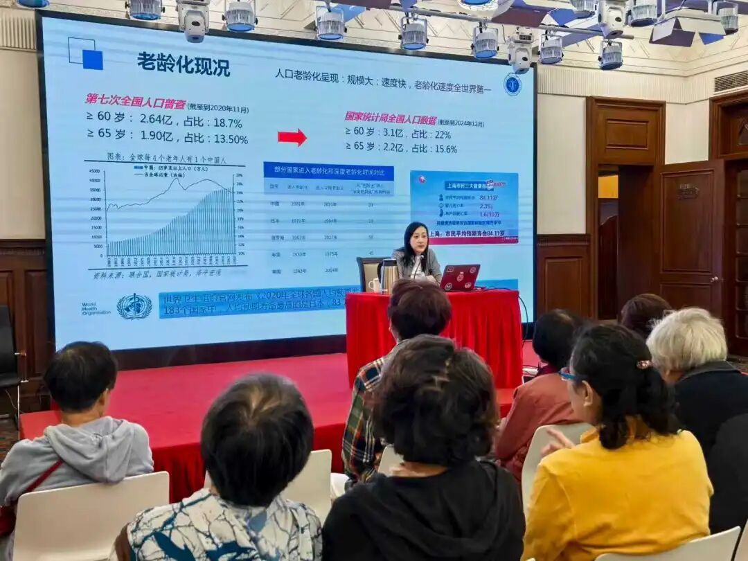 在石门二路街道蝴蝶湾党群服务中心,华东医院老年科主任医师、博士生导师陈洁围绕“老年衰弱防治”开展专题讲座,从评估方法到膳食营养给出专业指导。