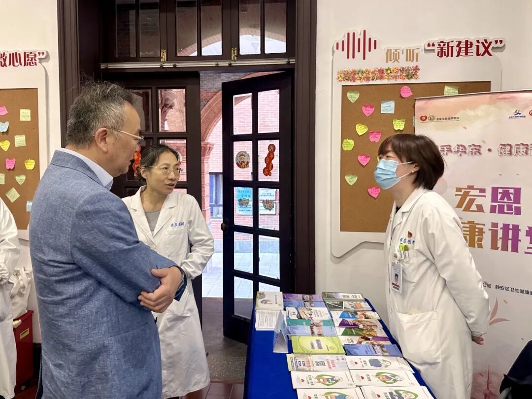 街道同步开展了两场多学科健康咨询活动,华东医院营养科、内分泌科、消化内科等领域专家现场坐诊,为老人解答慢性病管理、疼痛缓解等日常健康难题。同时,社区食堂滚动播放的“宏恩健康讲堂”健康科普视频,让老人更便捷获取健康知识,实现健康科普“随处可见、随处可学”。