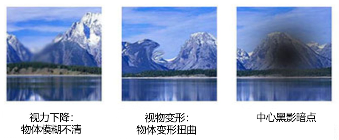 1.视力变化:看近处文字越来越吃力,即使换了老花镜也没用;看远处物体时,中央区域模糊不清。