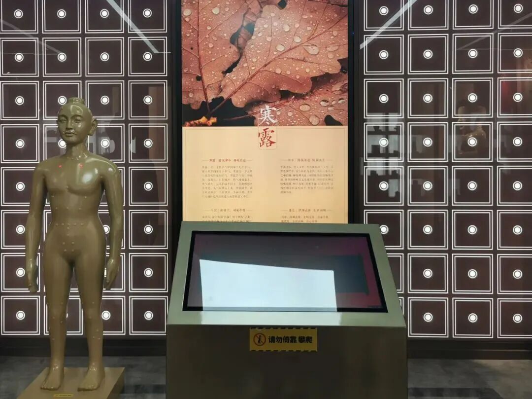 在药材展柜旁,一尊针灸铜人静静伫立,铜人会随着节气的变幻,按摩的穴位也应随之而变,为博物馆注入了鲜活的养生智慧。