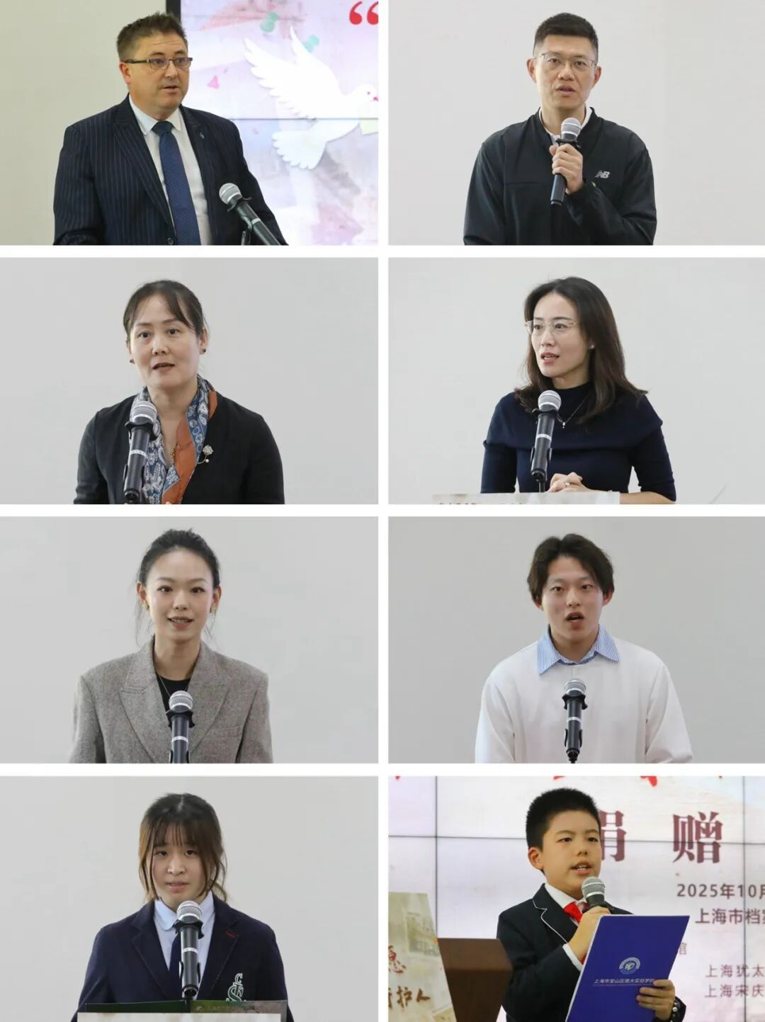 活动现场,来自上海和平饭店、上海犹太难民纪念馆、上海淞沪抗战纪念馆、上海四行仓库抗战纪念馆、宝山区南大实验学校、上海宋庆龄学校等单位的工作人员、国际友人和师生代表,从不同角度分享了参与本次活动的感悟,讲述了对历史与和平的理解,以及个人守护城市记忆的实践体验。