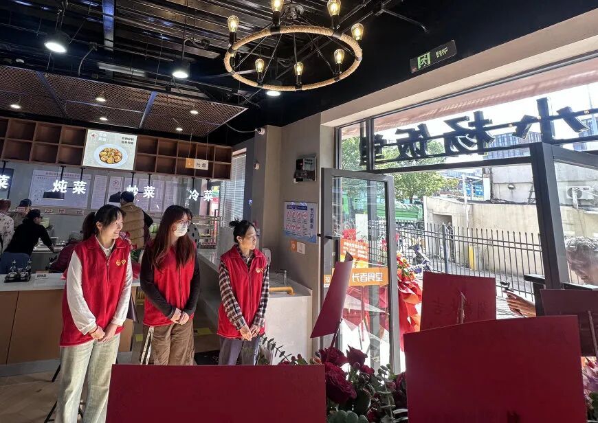 食堂门口,一群身着靓丽“红马甲”的志愿者吸引了不少人的注意。原来,江小杨饭堂(周家嘴路店)还创新引入了“江小YOUNG”青年志愿服务点,为社区长者服务注入蓬勃的青年志愿者力量。街道团工委工作人员陆威妤介绍,“江小YOUNG”是街道青年志愿服务品牌,聚焦“多代融合”与“平安宜居”,结合社区老年人多的特点,组织青年志愿者参与为老服务。“今天我们在这里进行就餐引导,未来还将提供餐前陪伴、健康宣讲等服务,把温暖送到老人身边。”