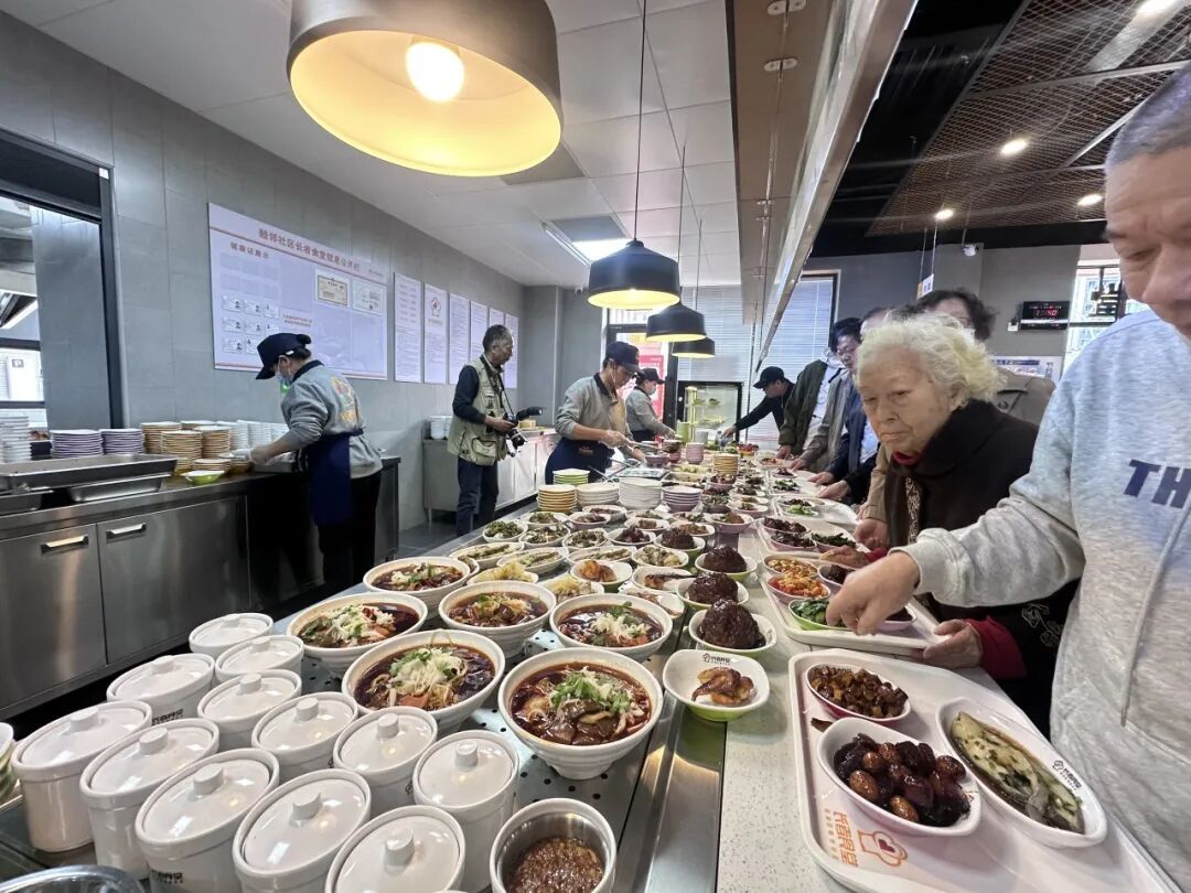 上午时分,食堂门口早已聚满前来“尝鲜”的老年居民。85岁的社区居民代表沈德福一早就赶到现场,“我经常过来看看,很关心这个项目的进展。”他笑着说,“终于开张了,我赶紧在微信群里告诉大家,大家都等着呢!”他言语间难掩喜悦。