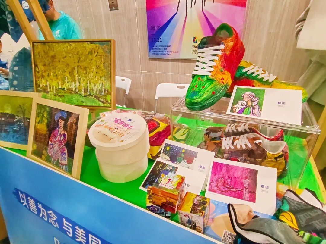 在上海闵行区同星关爱服务中心的展位上,孤独症孩子创作的作品被制成明信片、拼图和丝巾。“通过绘画、音乐、木偶戏等艺术疗愈方式,我们希望为孤独症群体提供全生命周期的支持。”同星关爱服务中心理事长张锐提到了未来的计划:在帮助孤独症青年表达自我的同时,也能为16岁以上的“星星的大人”创造一些收入渠道,形成更完善的社会支持体系。