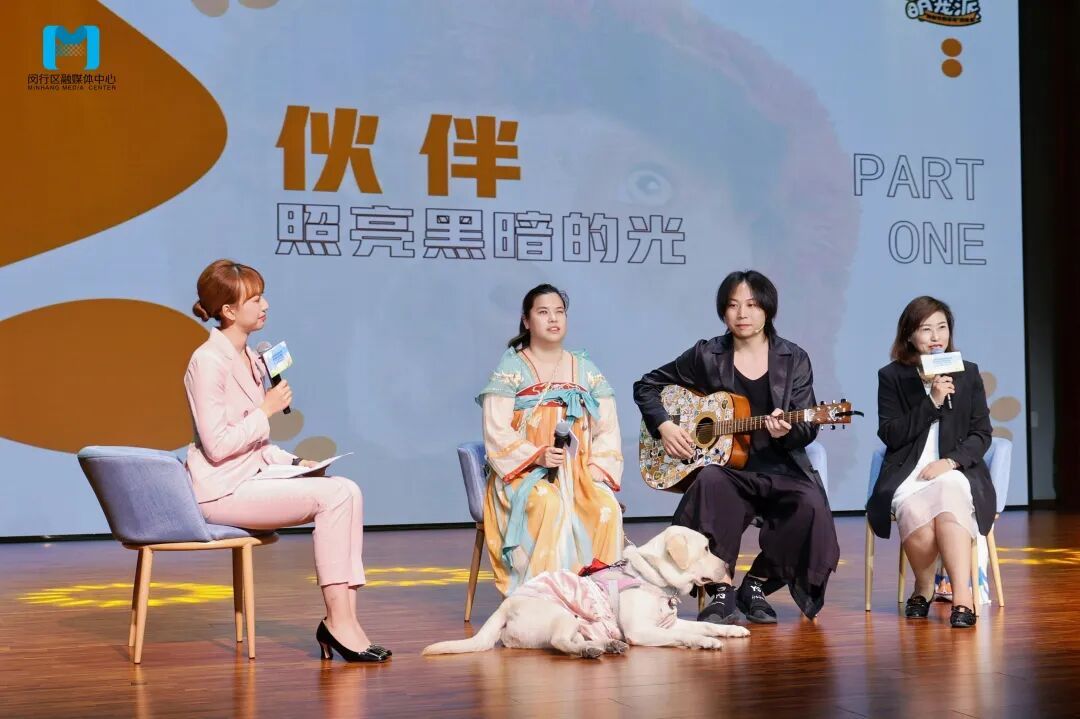 “萌宠派”板块则邀请闵行区3家社会组织负责人进行深度访谈,共同探讨萌宠在促进个人成长、助力乡村振兴、赋能产业发展等方面的多元价值,传递“人与它”之间的治愈力量。“其实我小时候特别怕狗,但比起怕狗,我更害怕父母不断为我担心,所以从创业开始就萌生了一定要自己独立的念头。”马寅青牵着导盲犬盖娅走上舞台。