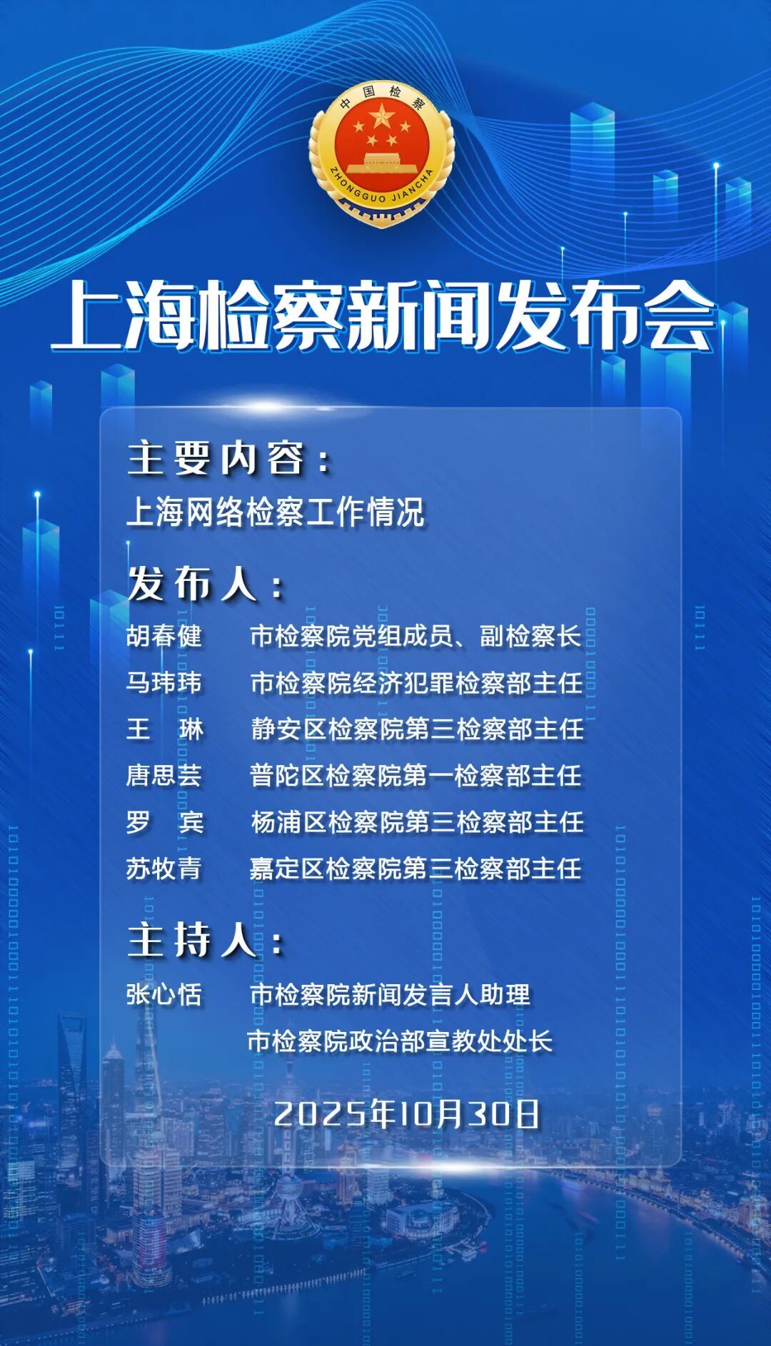上海市人民检察院党组成员、副检察长胡春健通报2024年以来全市网络检察工作情况及成效。