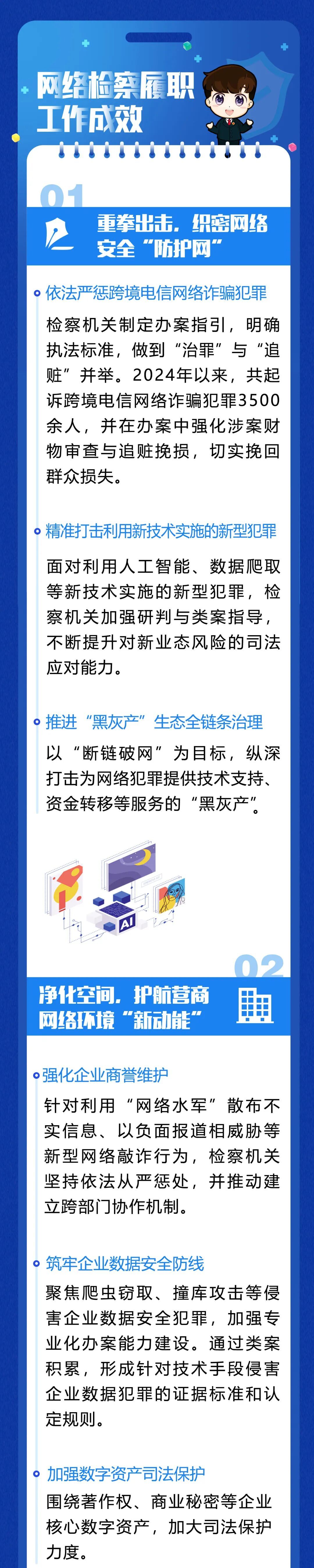 人工智能等新兴技术加速突破,在赋能经济社会高质量发展同时,新型安全风险与治理挑战也伴随而来。面对新形势,上海检察机关坚持治罪与治理并重,不断提升网络检察综合履职效能,为营造清朗网络空间、护航数字经济健康发展提供坚实司法保障。