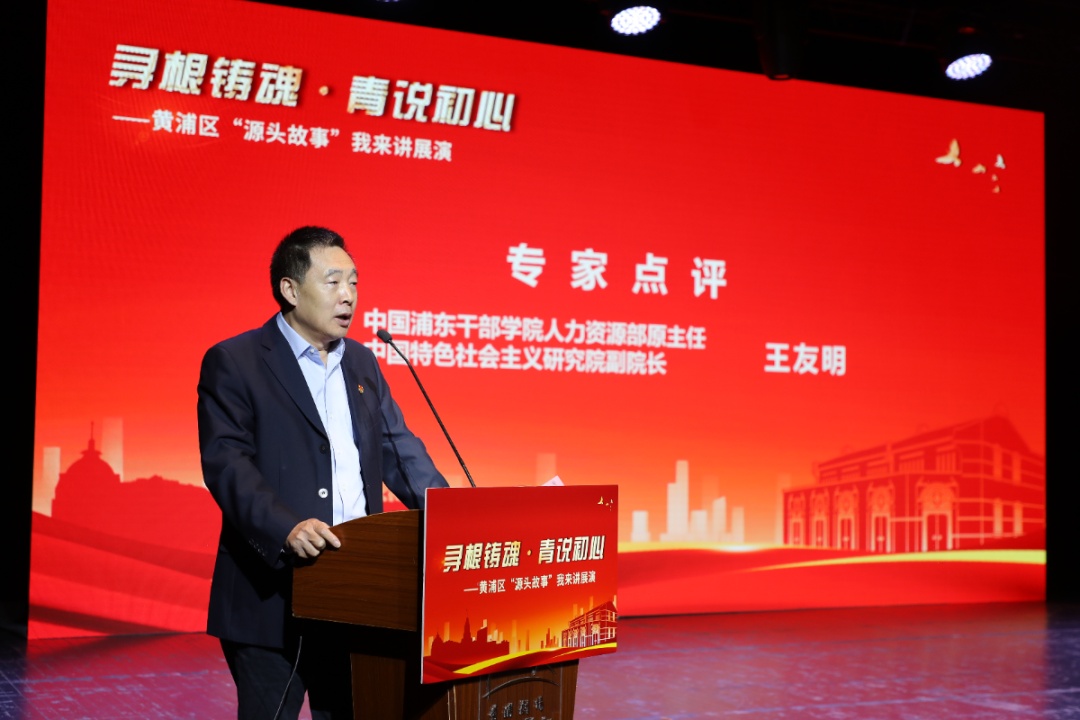 中国浦东干部学院人力资源部原主任、中国特色社会主义研究院副院长王友明代表专家评委对活动进行点评。他表示,本次展演主题鲜明、内容厚重、形式鲜活,体现出政治站位高、思想引领好、参与范围广、艺术形式多的特点,既是一场红色文化的青春盛宴,更是一堂生动的“大思政课”。他勉励广大青年继续深挖红色资源,创新讲述方式,让红色故事“声”入人心、“讲”出实效,推动红色基因代代相传。