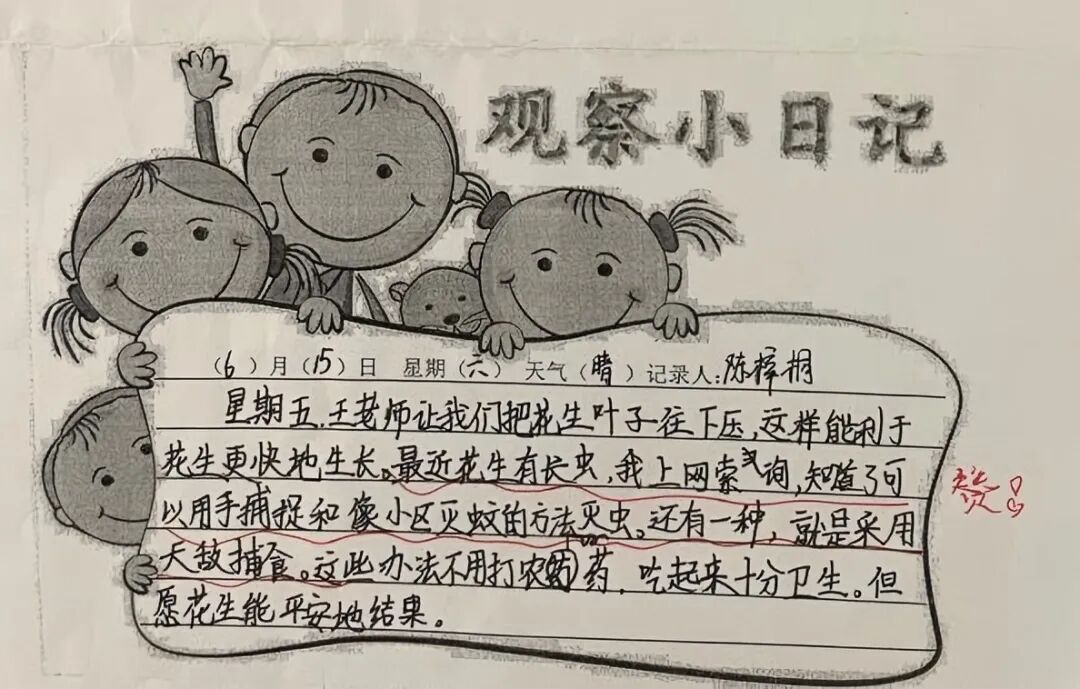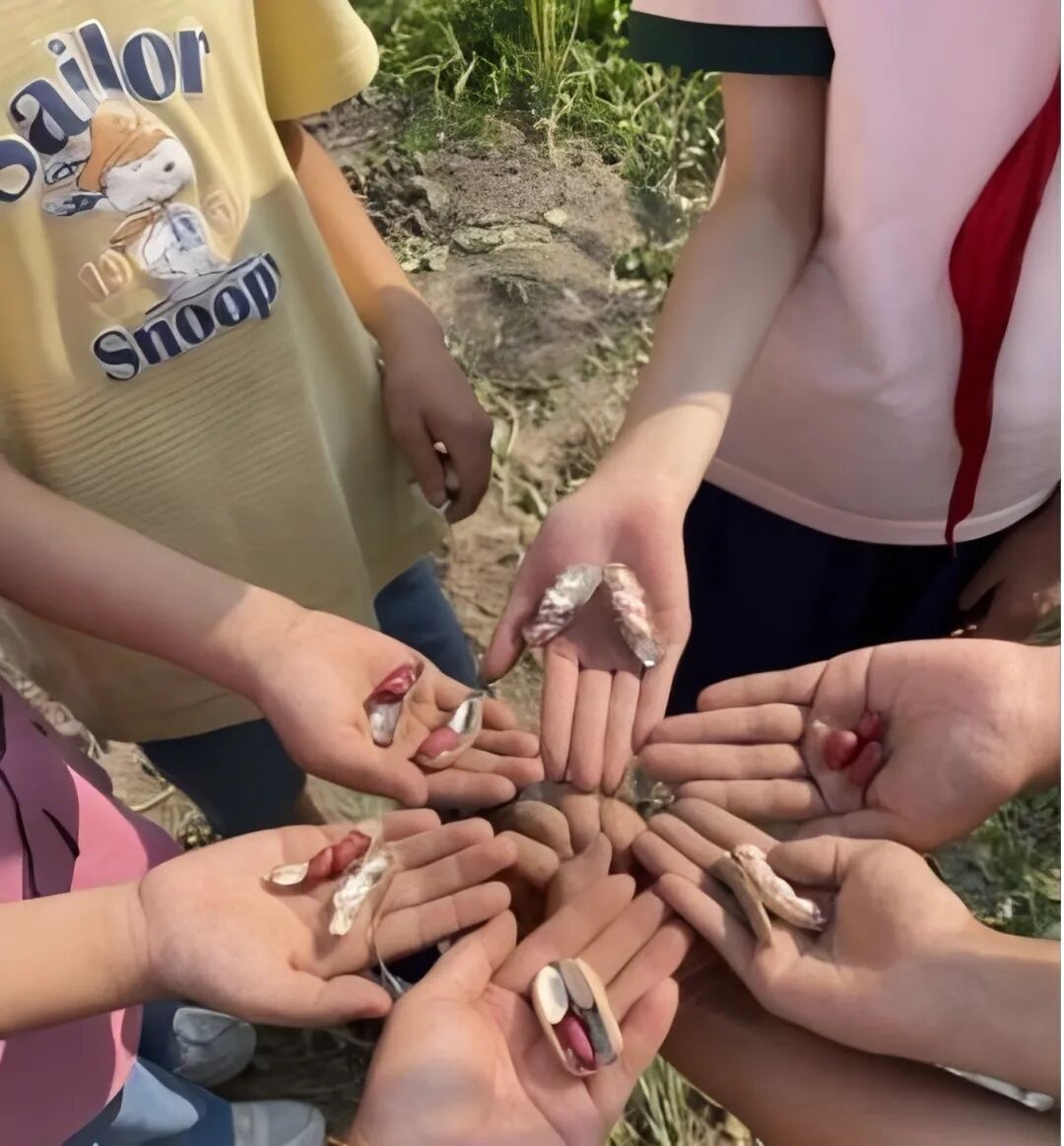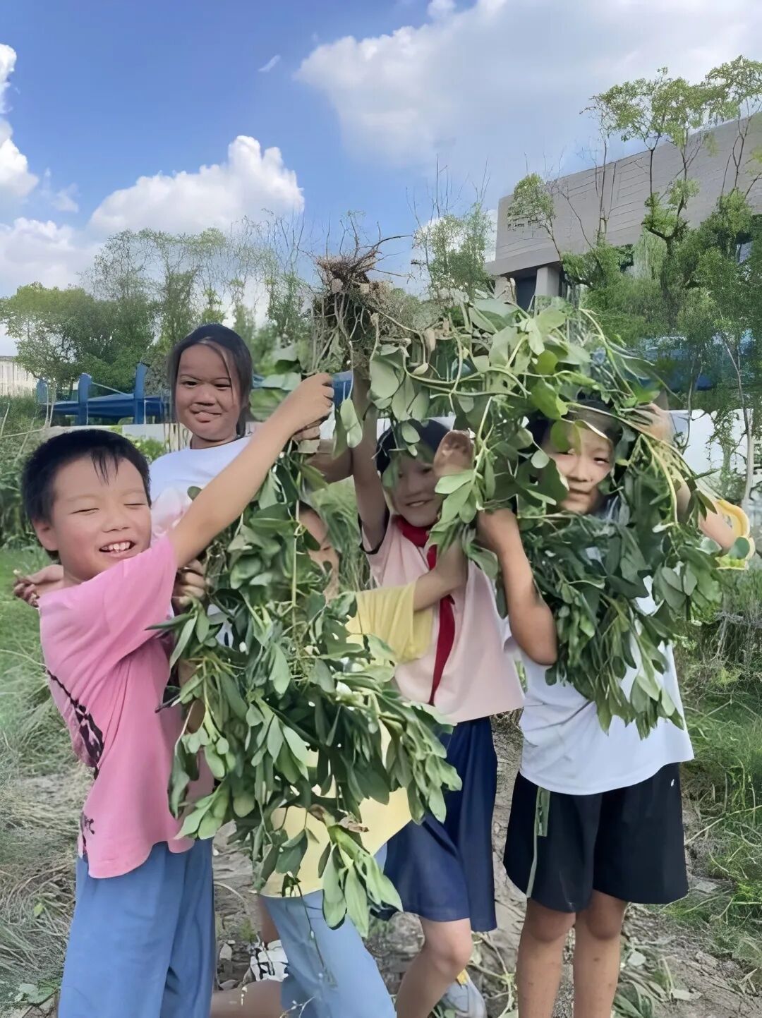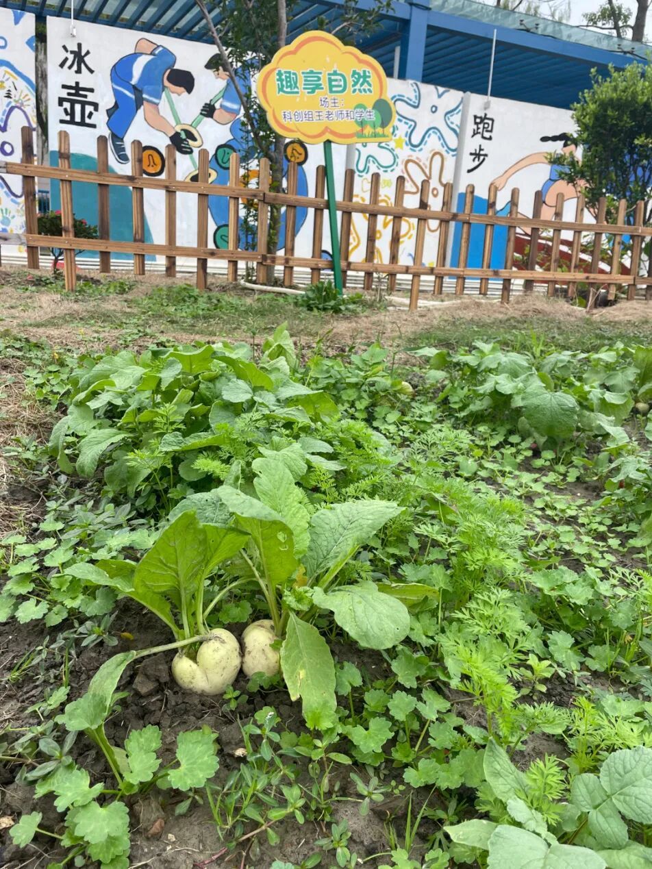 泗泾小学种类丰富且分布广泛的校园生态资源,为跨学科学习活动的开展提供了丰富的环境支持。科创中心基于校园自然生态特点,以种植体验为载体开展探究活动,融合语文、科学、劳动教育、艺术等多学科内容,引导孩子们充分调动多种感官,体会草木成长的神奇,以多元形式分享自然经历,进行有趣味有温度的“自然教育”。