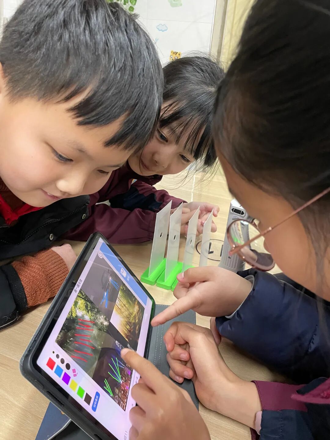 科学学习的意义在于将科学概念与日常生活体验建立联系,在真实的情境中提升学习者的存在感、角色感和参与的真实性。在教学过程中,学校科学学科教师以学生们感兴趣的教材内容为出发点,借助数字化平台和智能学习方式,与信息技术、美术等学科进行跨学科融合教学,创设AR赋能的学习体验情境,引导学生自主学习,培养提出问题和解决问题的能力。 “数智赋能”将信息技术巧妙地融入学科教学中,创设丰富的体验情境,化抽象为具体,通过观察、比较、实验、阅读等多样的趣味活动,营造生动的互动体验,帮助学生建构新知、深化概念、提升思维,有效激发学习兴趣,提升学习的思维深度与广度。