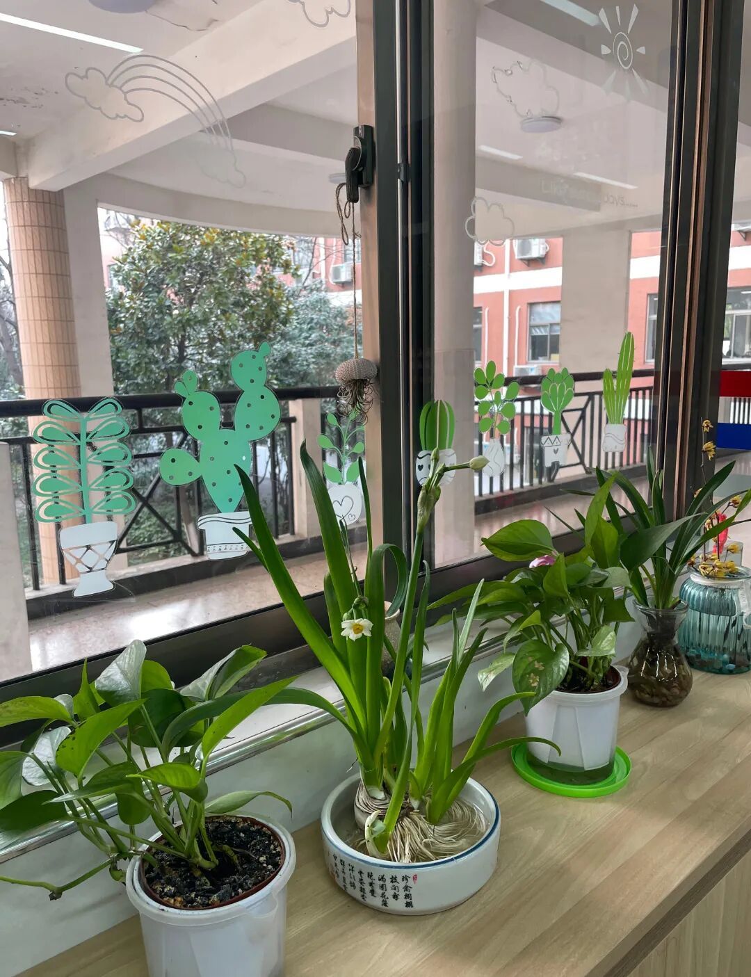 ▲教学探讨区以小组形式布置,方便沟通与交流。每组均配备平板电脑,方便学生借助数字化平台开展学习。 ▲作品展示区是学生创意思维和实践能力的展示区域。 ▲种植体验区为进行日常种植和观察记录的活动空间,方便孩子们结合兴趣和学习内容选择合适的绿植栽种养护。