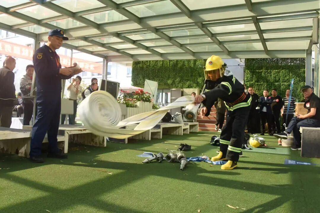 比赛现场气氛热烈,节奏紧凑。在水电维修赛区,选手们沉着冷静,精准完成水管与电路的连接与维修,每一个接口、每一处布线都展现出扎实的功底与严谨的态度。安全生产赛区同样扣人心弦,消防装备快速穿戴、消防水管利落甩出、灭火器规范操作,一连串动作娴熟利落,体现出物业人员在应急处理方面的专业素养。评委们穿梭于各赛点之间,从工艺流程、操作规范、完成质量等多维度进行细致评分。
