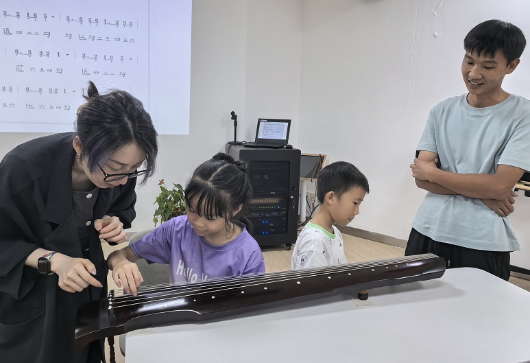 《论语》课上,老师以生动的讲述带领亲子家庭走进孔子的精神世界,感悟其在理想与现实之间的坚守,引导孩子们体味“知之者不如好之者,好之者不如乐之者”的学习境界;国画课上,大家在笔墨点染间感受国画含蓄雅致的韵味;围棋课堂中,老师带领学员讲解“棋从断处生”的博弈智慧,孩子们在实战中锻炼思维;书法课上,老师耐心示范指导,让孩子们体会汉字的结构之美;古琴课则带来一场“琴韵启蒙”,广陵派杜思睿老师讲解古琴历史与文化内涵,并指导孩子们抚弦听音,在《高山流水》的经典曲声中感受“天人合一”的意境。