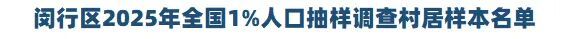 国家统计局发布公告,全国1%人口抽样调查将于2025年11月1日启动入户登记,现场登记工作时间为2025年11月1日至30日。闵行区2025年全国1%人口抽样调查抽中样本名单正式公布,覆盖全区14个街镇(工业区),总计抽取314个村居委,约3.2万个住户进行入户调查。