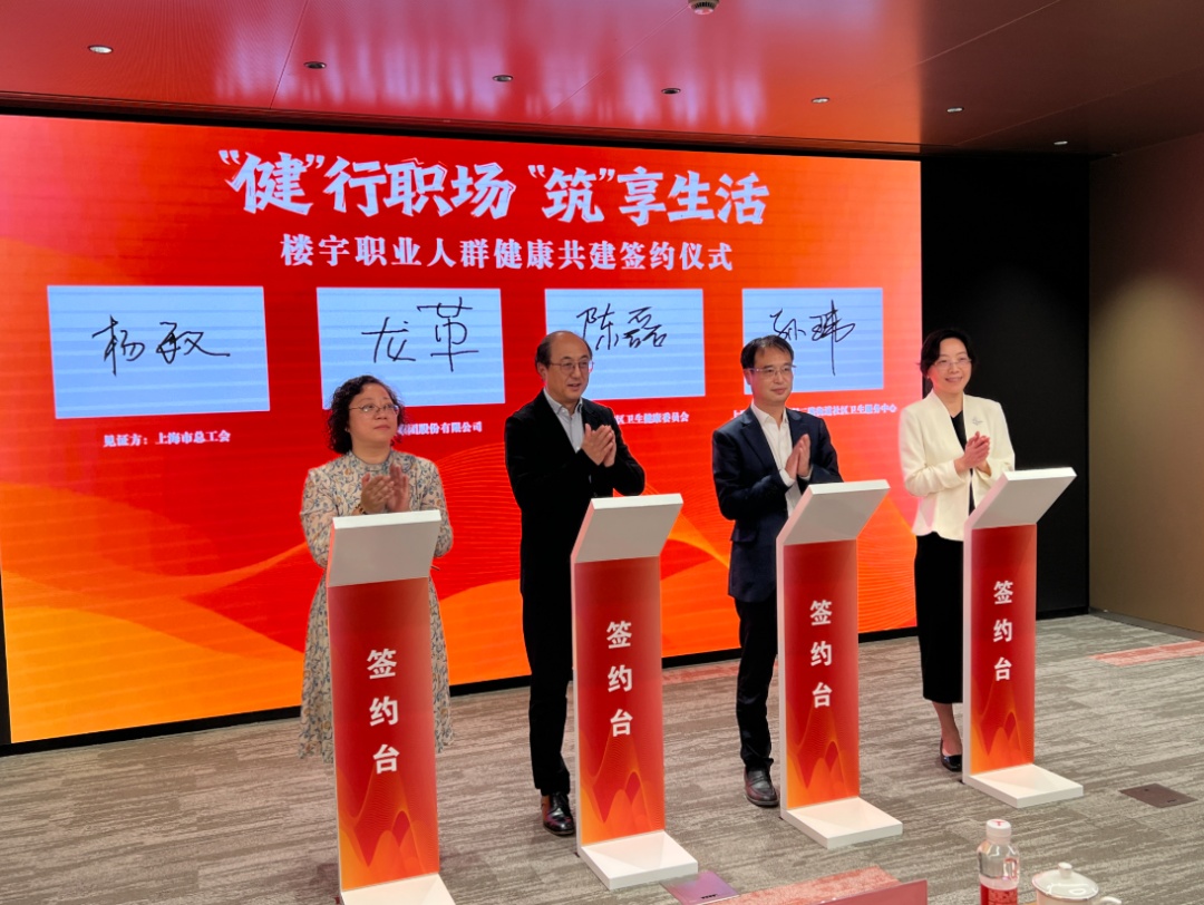 活动现场,区卫生健康委、石门二路街道社区卫生服务中心与华东建筑集团共同签署了楼宇职业人群健康促进共建协议,推动社区卫生服务资源与企业健康管理深度融合,为职场人群提供更加系统、便捷的健康服务。