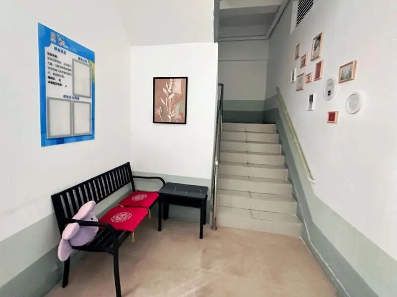 如今,楼栋入口和楼道转角经过打造,变成了居民们喜爱的“共享空间”:宣传栏上贴着楼组公约、业委会选举通知;快递架上,居民们的包裹有序摆放;简易桌椅为交流、歇脚提供方便。“居民拎着重物回来,可以在这里缓一缓;邻里有事商量,有了新去处。”鲁爷叔说,这里虽不豪华,却温暖实用。