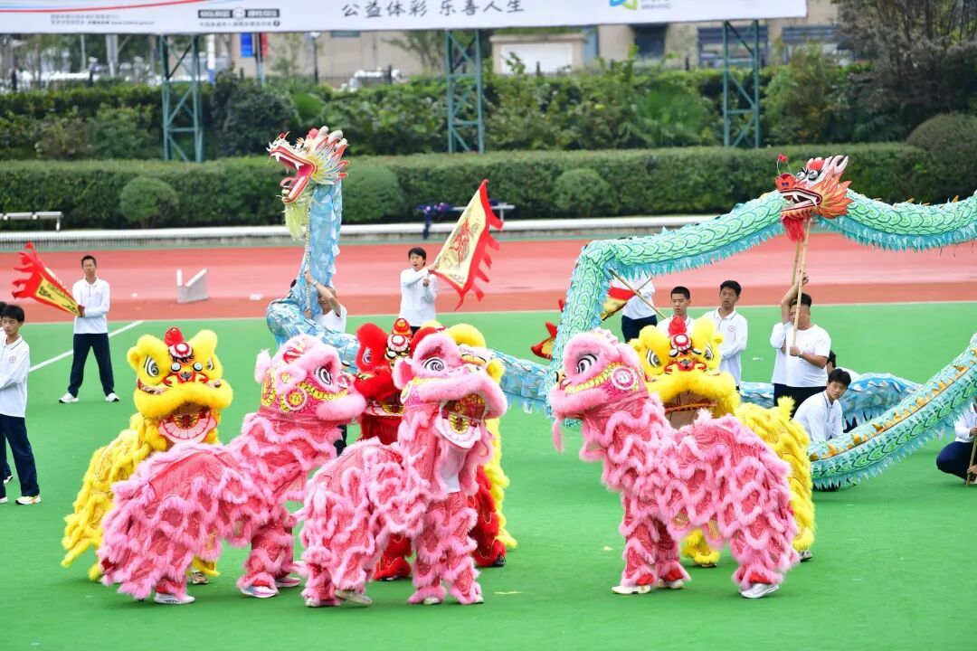 鼓点激越,少年们舞动着金鳞闪烁的游龙,与威武的雄狮一同翻腾跳跃,引得场边阵阵喝彩……10月31日,莘庄中学体育节成果展暨第六十二届运动会在闵行体育馆举行,这场突破传统竞技模式的综合性体育盛会,将艺术与体育深度融合,成为学校“以体育人”、聚焦学生综合素养落地的生动实践。