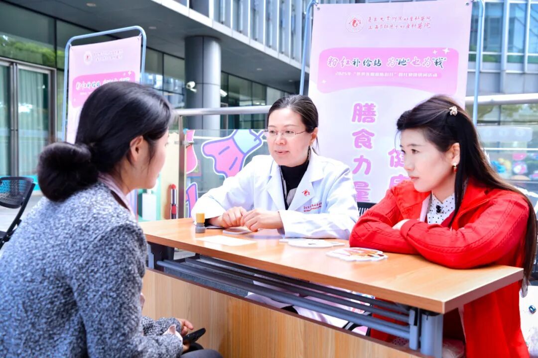 与此同时,在杨浦区平凉路街道渔人码头党群服务站,一场专为女性和所有关心健康者打造的“粉红丝带”养生快闪——“‘粉红补给站’,为‘她’也为我 2025‘世界乳腺癌防治月’粉红健康快闪”活动火爆开场,让居民和周边白领在午休时间与三甲专家面对面。