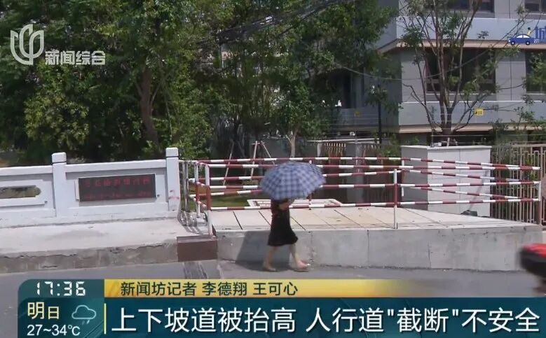 近日,“新闻坊”节目报道了万安路近水电路桥处上下坡道被抬高,人行道被“截断”不安全的情况。