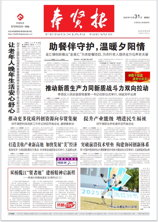 高质量发展是新时代的硬道理。党的二十届四中全会把推动高质量发展作为“十五五”时期经济社会发展的主题。近日,区委书记刘平强调,“要牢牢把握‘十五五’期间的目标任务,坚定不移推动高质量发展。”三十年前,奉浦大桥让奉贤“跨过黄浦江”;三十年后,奉贤要以建桥精神“迈向新时代”,奋力书写“奉贤美、奉贤强”新篇章。