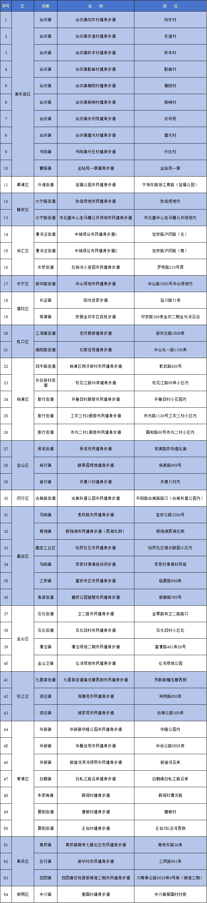 新建和改建市民健身步道54条