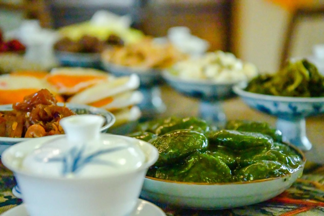 阿婆茶市级代表性传承人鲁仙珍阿姨,平日里话不多,可一聊起阿婆茶,那份深植于心的热忱便自然流露。她一边熟练地码着小菜,一边就和我们聊了起来,“我们这阿婆茶,可是被乾隆皇帝‘金口’说出来的。”