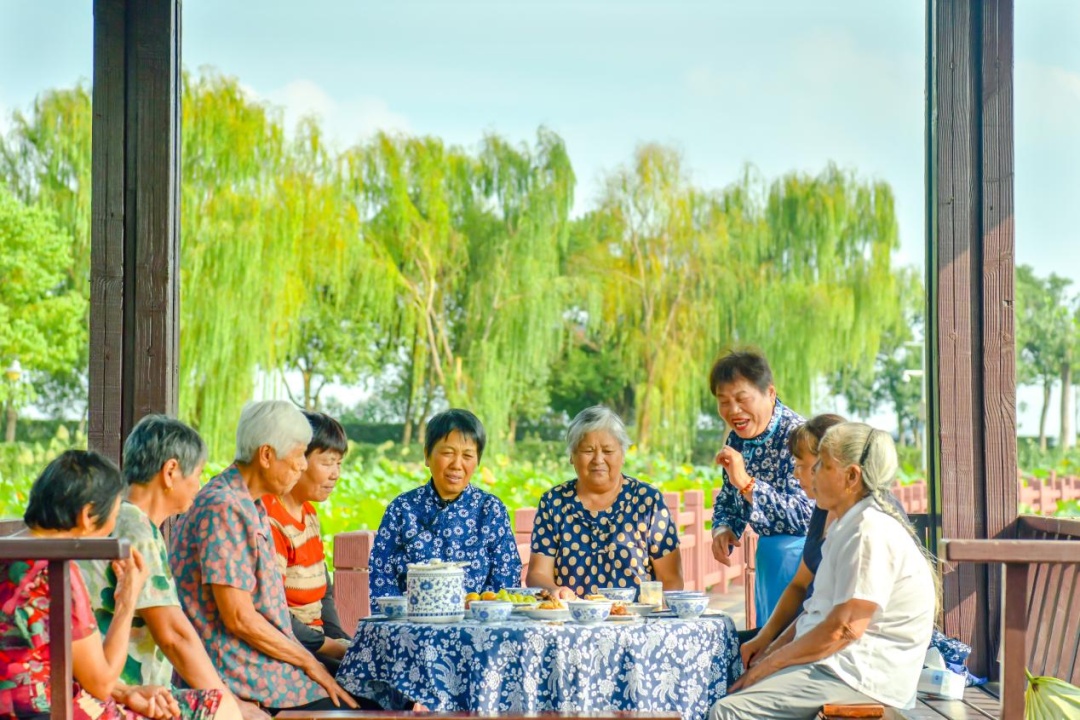 在快节奏的都市生活之外,青浦金泽镇商榻社区,还保留着这样一个温情满满的民俗。午后阳光斜照,农家客堂或临河廊棚下,左邻右舍的阿婆们围坐一桌。桌上咸菜苋、熏青豆、菜笕塌饼等茶点琳琅满目,人手一杯清茶,谈天说地,其乐融融。这就是入选了上海市非物质文化遗产的阿婆茶。