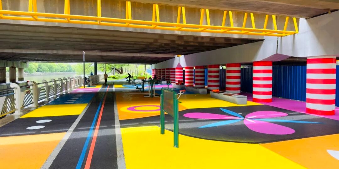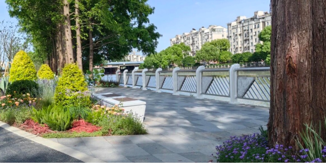 川杨河(杨高南路-上南路)北侧绿道“花影游廊”历经100天改建翻新,这条滨水绿带从普通河岸变身功能多样的城市秘境。