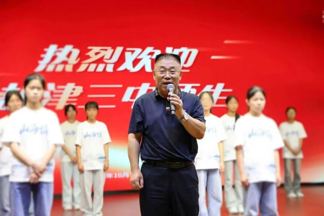 近日,付宗亮校长(中)带领盐津三中学生在上海参加北外田园高中联欢会