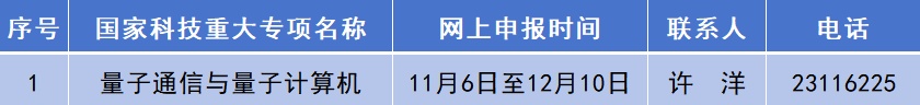 《关于发布“量子通信与量子计算机”国家科技重大专项公开竞争类项目2025年度项目申报指南的通知》