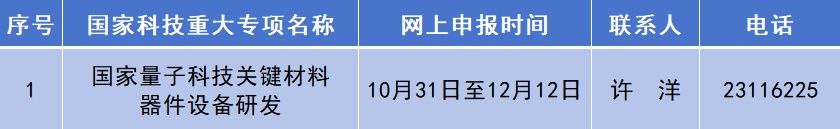 根据合肥国家实验室《关于发布国家重点研发计划“国家量子科技关键材料器件设备研发”重点专项2025年度项目申报指南的通知》有关要求,为做好本市国家重点研发计划“国家量子科技关键材料器件设备研发”重点专项2025年度项目的申报及推荐工作,特通知如下: