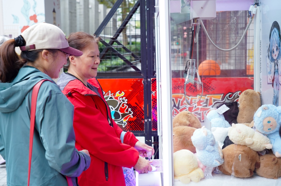 此外,童趣重现区域引入娃娃机、投篮机等怀旧设备,唤起老年人的童年记忆,现场欢声笑语不断。爱心汇聚区域以“公益+环保”为主题,设立慈善云平台宣传咨询点,工作人员耐心讲解平台功能,邀请市民参与线上公益项目;黄浦区公证处贴心为老人提供专业咨询服务,现场为老年人解决法律难题。植物创意手作、环保手作等义卖摊位前,市民踊跃购买,所得款项全部用于社区助老服务。街区乐队表演、小丑杂技、小荧星的孩子们带来长笛演奏等快闪节目更是将现场气氛推向了高潮,欢声笑语回荡在整个活动现场。