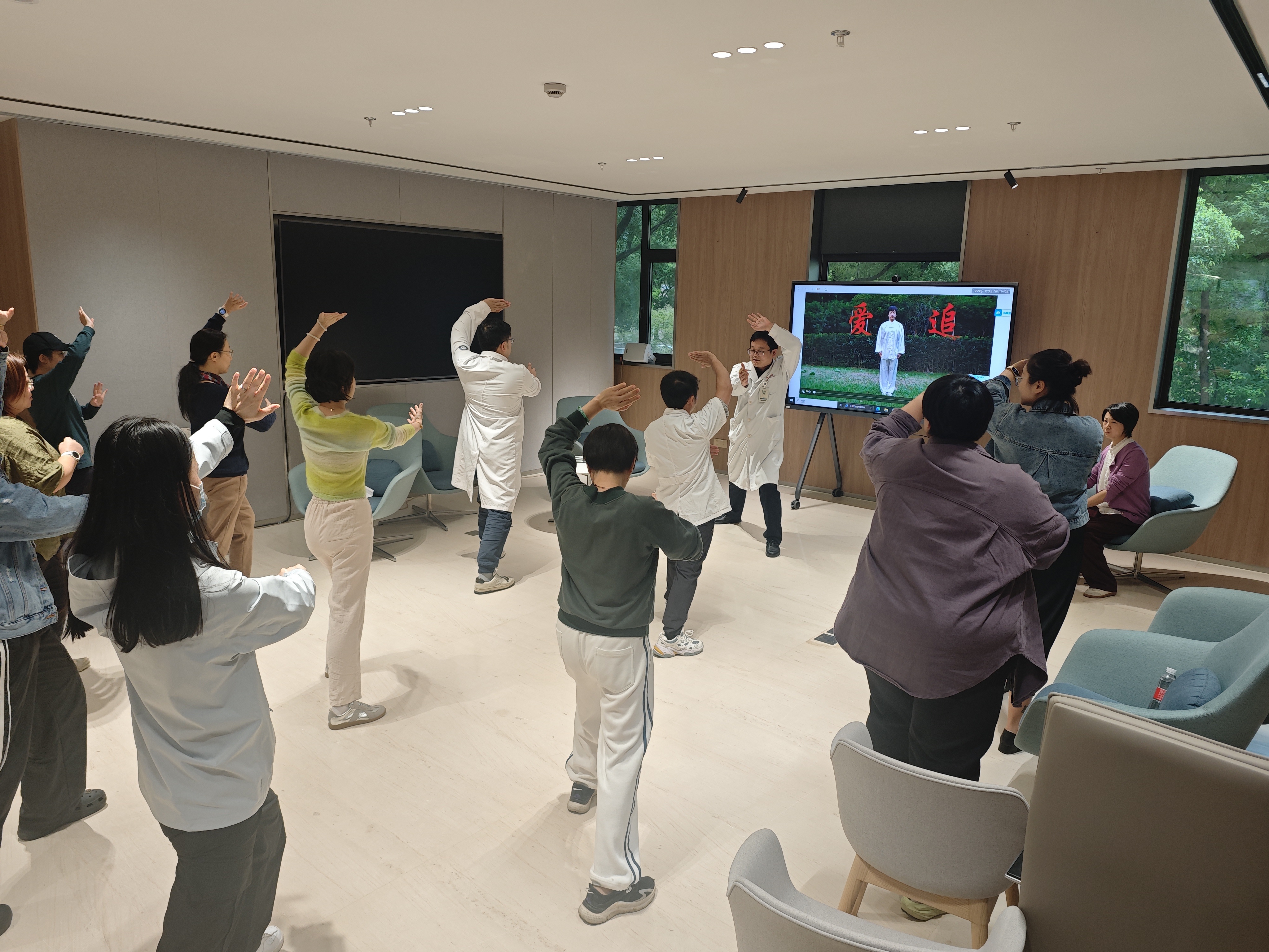 现代建筑设计大厦北楼一楼同步举办的中医药主题画展,以笔墨丹青展现中医药文化的深厚底蕴;痛风科普联盟讲座、导引操现场跟学、颈椎病防治科普等环节,更是直击楼宇职工 “长期伏案、低头看屏” 的健康痛点,让职工在互动中收获健康知识。