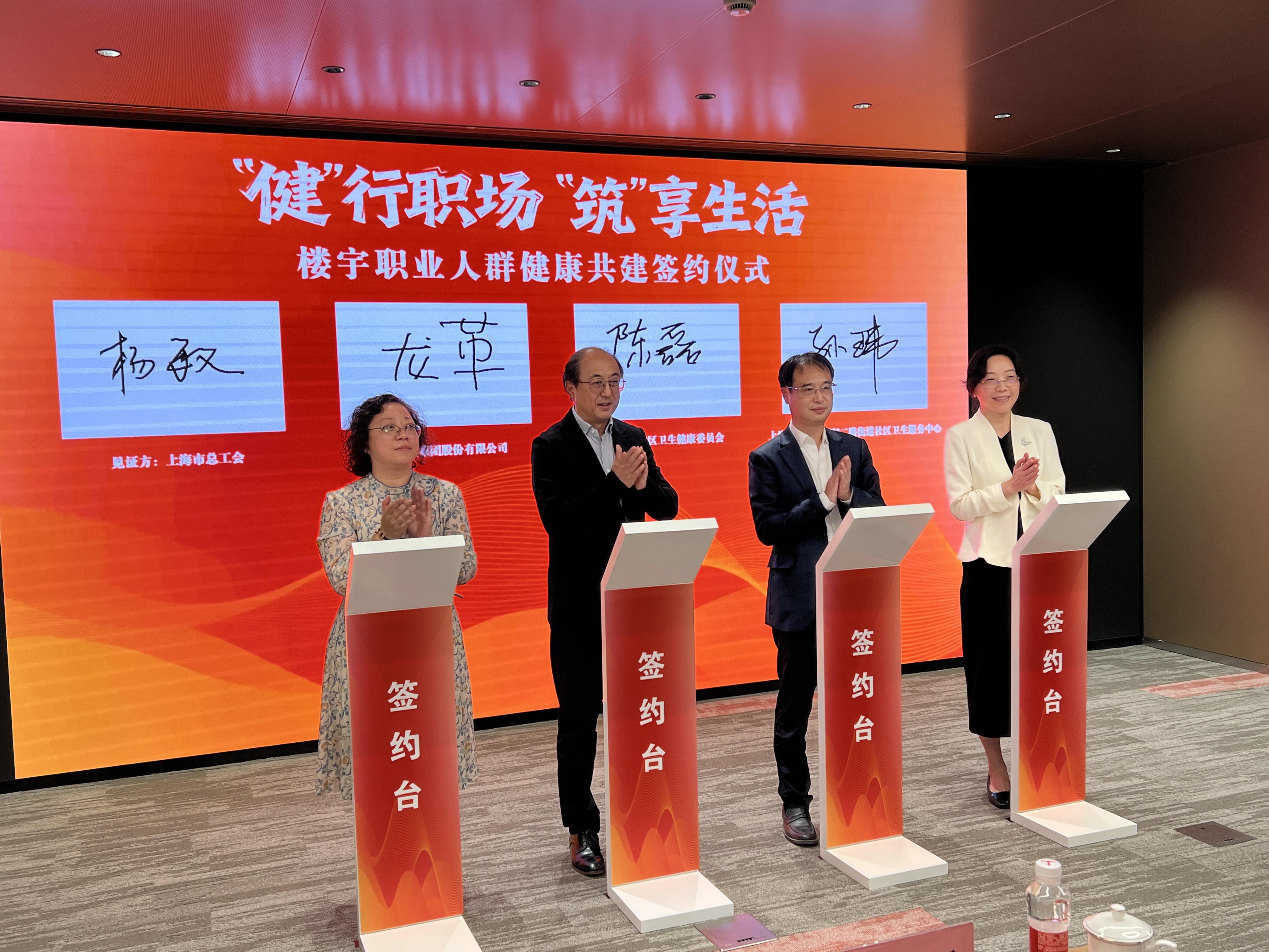 活动现场,静安区卫生健康委、石门二路街道社区卫生服务中心与华东建筑集团共同签署了楼宇职业人群健康促进共建协议,推动社区卫生服务资源与企业健康管理深度融合,为职场人群提供更加系统、便捷的健康服务。