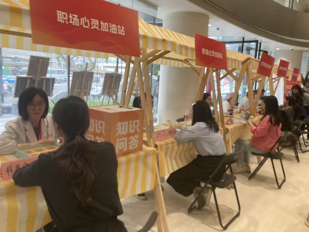 活动现场设置的健康市集与互动体验区,集结了20余个咨询服务点,涵盖体质辨识、膏方品鉴、营养指导、眼病筛查等内容,吸引了众多楼宇职工积极参与。