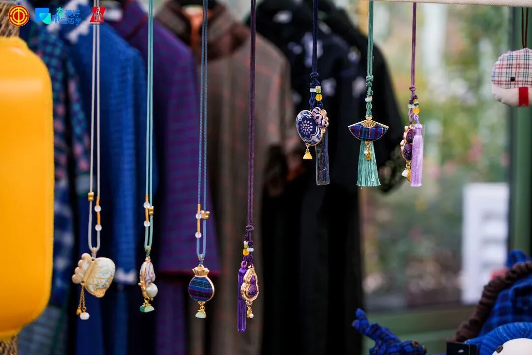 在羊鑫布艺的展台,土布被制成十二生肖的玩偶,耳环、胸针、发卡也带上了独特的纹样。上海羊鑫服饰有限公司董事长杨玉娟拿起了一只土布制成的小马:“明年是马年,我们会向闵行的劳模工匠送去纯手工制作的土布小马。”