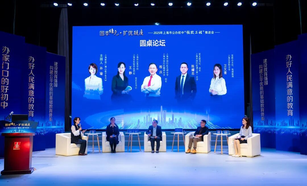 日前,上海市公办初中“强校工程”推进会在上海市闵行区颛桥中学举行,通过课堂教学观摩、区校经验分享、圆桌论坛等多种形式分享第一、第二轮公办初中强校工程经验,并对下一阶段重点工作作部署。上海市教育委员会副主任杨振峰、闵行区人民政府副区长张贤、国家教育咨询委员会委员张民生等出席会议。