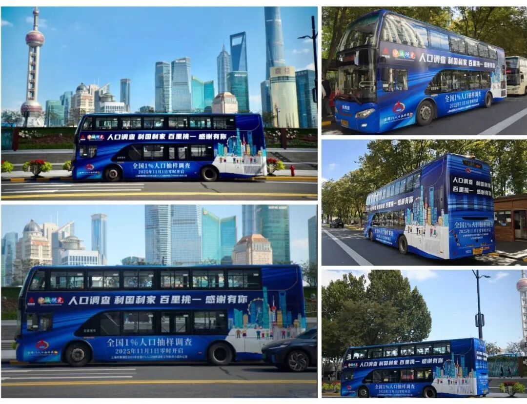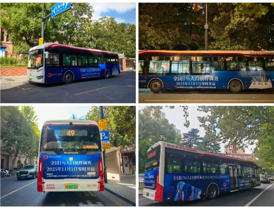 为提升人口抽样调查宣传触达率,区人调办充分发挥公交车身广告的流动传播优势,于10月下旬在黄浦区旅游7线(申城观光1号线)和49路两条重点公交线路投放宣传广告。这两条线路覆盖辖区内重点旅游景点及人流密集区域,醒目的宣传口号随公交车穿梭街巷,形成流动的“蓝色风景线”,让调查信息随车流传递到城市各个角落。