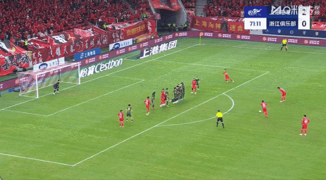 第72分钟,替补登场的老将吕文君赢得禁区前任意球机会,维塔尔主罚直接任意球,皮球贴着门柱弹入球网,海港3比0领先浙江,杀死了比赛悬念。