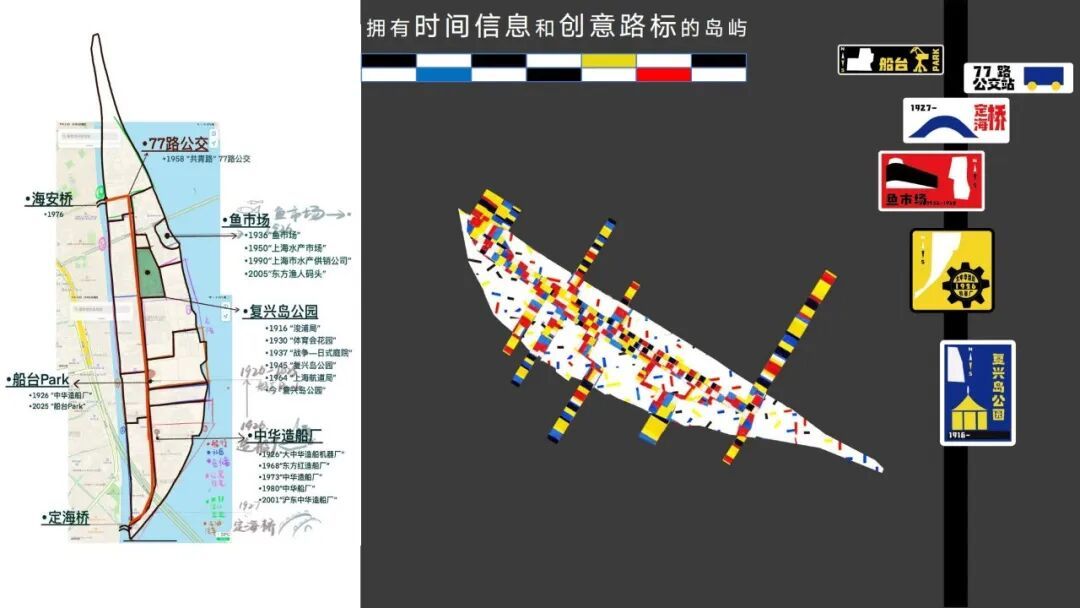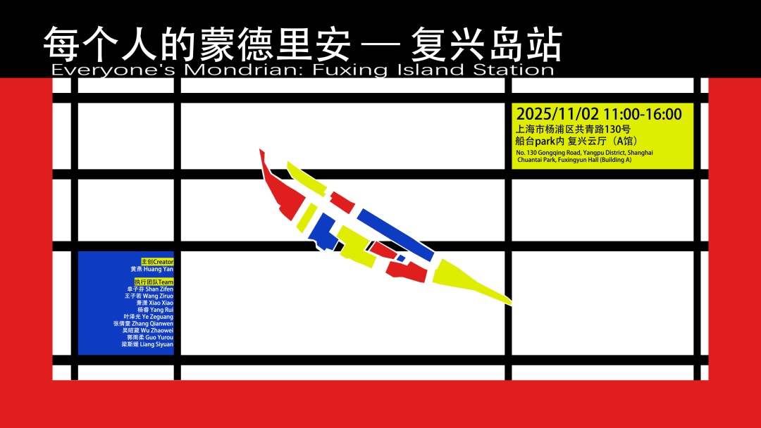 将蒙德里安的经典美学——纯净的三原色、黑白灰网格与理性构图,融合复兴岛发展的历史信息与区域板块,每个人的创作想象将在共同游戏中描绘出这个岛屿的色彩文本。欢迎喜欢色彩的你、寻找故事的你、热爱手工的你、捣鼓图形的你、即兴创意的你……任何愿意在复兴岛上成为“蒙德里安”的你!
