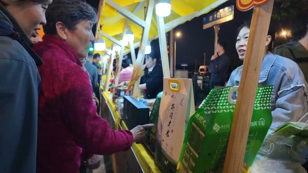 这些丰富多彩的集市内容吸引不少市民驻足。市民马女士在集市上一口气购买了5袋外冈新大米。“外冈大米的新米口感很好,分给亲朋好友一起吃吃,也帮我们本地的农产品宣传下。”马女士说。