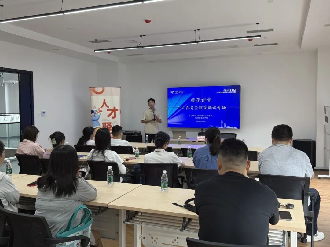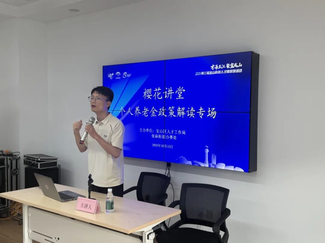 为进一步激发人才创新活力,精准赋能企业发展,优化人才服务保障,增强人才归属感,近日,宝山区人才工作局联合张庙街道在街道党群服务中心开展2025第三届宝山科创人才周系列活动之樱花讲堂个人养老金政策解读专场活动。本次活动聚焦企业与人才需求,先后解读企业年金政策法规、个人养老金制度、青年人才“伴飞”计划等政策介绍。通过专业的讲解帮助企业和人才精准掌握政策要点、提升办理效率,活动共吸引宝山区近20家企业代表参会。