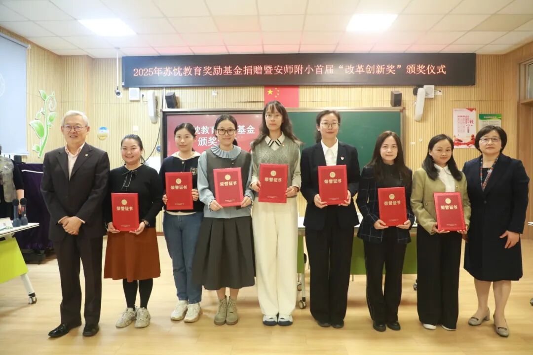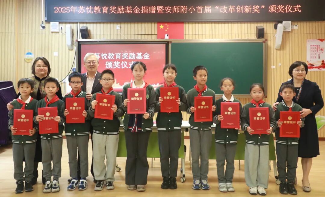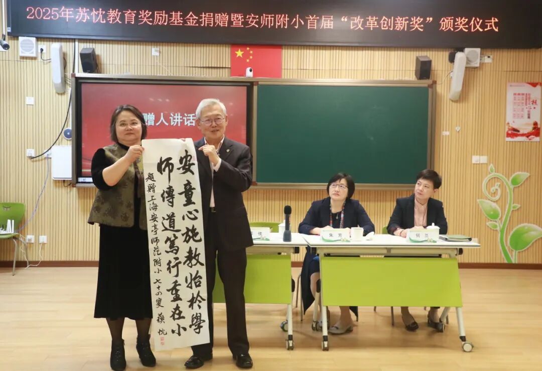 10月30日,2025年苏忱教育奖励基金捐赠暨首届“改革创新奖”颁奖仪式在上海市安亭师范附属小学(前安亭师范学校)举行。该校79届校友、上海市教育学会副会长苏忱专程返校,再次捐出自己的稿费与讲课费收入,设立专项教育奖励基金,用于激励安师附小的优秀师生。