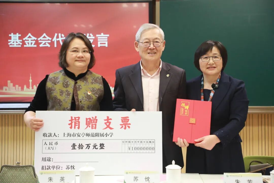 据介绍,这已是苏忱的第二次慷慨捐赠。在2024年安师附小百年校庆之际,他便捐资设立了专项基金会。仪式上,苏忱回忆了在安亭师范学校的求学岁月,表示那段经历锤炼了他的意志,也奠定了他毕生投身教育事业的基石。“我做捐赠,不图任何功利回报,只想把教育办得更加纯粹一点,让孩子们能够努力学习,健康快乐地成长。”